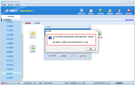演示視頻觀看鏈接:RMS專(zhuān)業(yè)版存在期初庫(kù)存啟用賬套啟用不了如何解決?