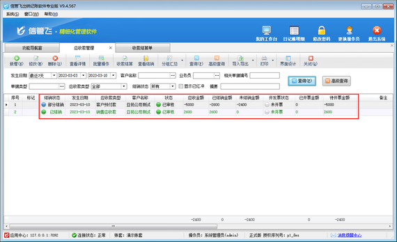 客戶預付款是客戶提前預付給我們的金額,可以用來沖銷銷售產生的應收款,本文以信管飛出納記賬軟件為例演示一下客戶預付款部分沖銷銷售應收款,如何開收款結算單?