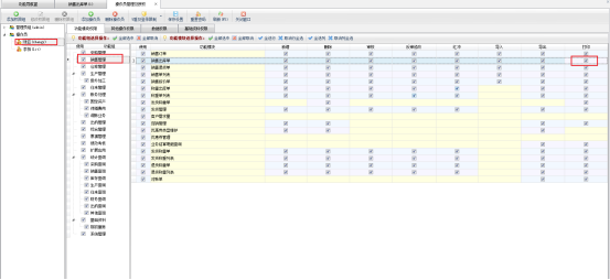 切換“系統(tǒng)管理員”登錄,功能導(dǎo)航欄點擊“系統(tǒng)管理”—》“操作員及授權(quán)”,選中操作員賬號,功能模塊權(quán)限下選中銷售管理,銷售出庫單,勾選打印權(quán)限,勾選之后點擊保存,如圖所示: