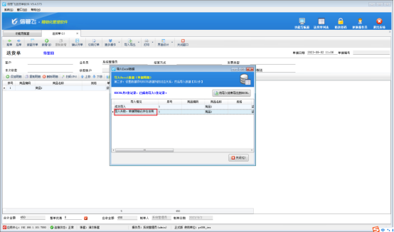 送貨單開單界面,直接導入EXCEL明細出現(xiàn)提示“導入失敗,單據(jù)明細已存在”,這是因為導入的明細數(shù)據(jù)有重復導致的:
