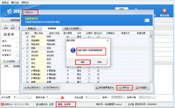 信管飛軟件的開單界面設計均支持自定義配置,客戶新增新賬套時需要和舊賬套開單界面配置保持一致,軟件可通過界面設計導出導入配置數據功能進行快速配置,本文以“信管飛送貨單軟件”為例進行示范。