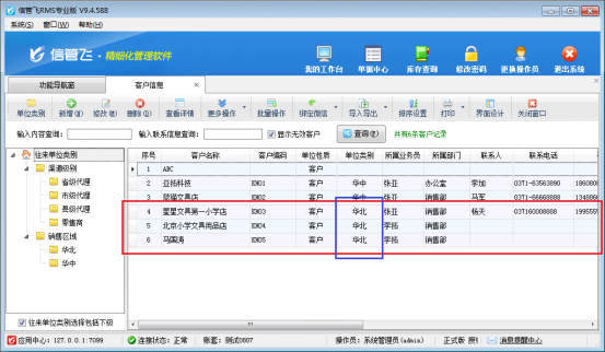 然后到“華中”類別下從新查看客戶信息,剛才的3個單位類別都已經改變了,其界面如圖所示。