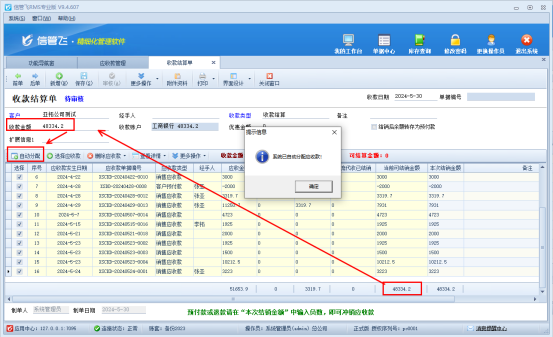 信管飛軟件的應收款批量結算功能,通過簡單的幾步操作,企業(yè)就能輕松實現(xiàn)多筆應收款的批量結算,無需再逐筆手動處理,大大節(jié)省了人力和時間成本。