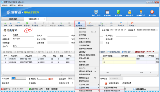 單據(jù)界面,更多操作下---發(fā)送微信消息---查看微信發(fā)送記錄,查看微信消息發(fā)送情況,如圖所示: