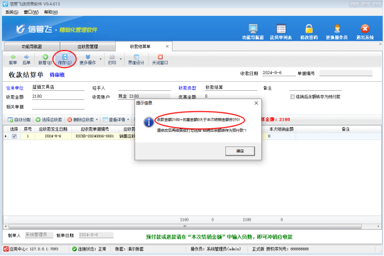 演示視頻觀看鏈接:收款保存提示“收款金額大于本次結(jié)銷金額”,如何解決?