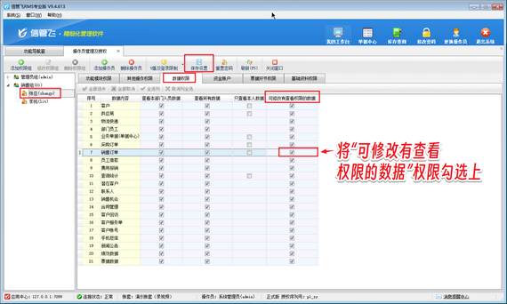 出現以上問題的原因是:操作員賬號沒有“可修改有查看權限的數據”的權限