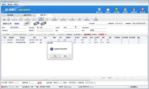 權限設置完成后,使用操作員賬號重新登陸軟件,重新打開銷售訂單界面審核銷售訂單,即可審核成功,如下圖所示。