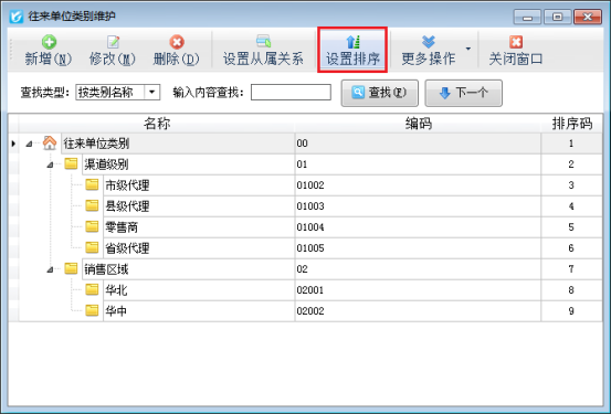 功能導(dǎo)航窗點“基礎(chǔ)資料”—》“客戶信息”即可進(jìn)入“客戶信息”界面,工具欄點“單位類別”進(jìn)入往來單位類別維護(hù)界面,點“設(shè)置排序”按鈕,可進(jìn)行排序,點“自動排序”會按照編碼自動進(jìn)行排序;點“上移”、“下移”按鈕可向上、向下調(diào)整顯示位置,如圖所示。