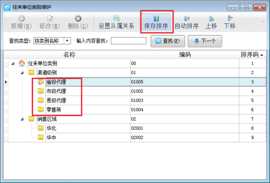 設(shè)置之后點“保存排序”按鈕,保存后單位類別按排序后位置顯示。
