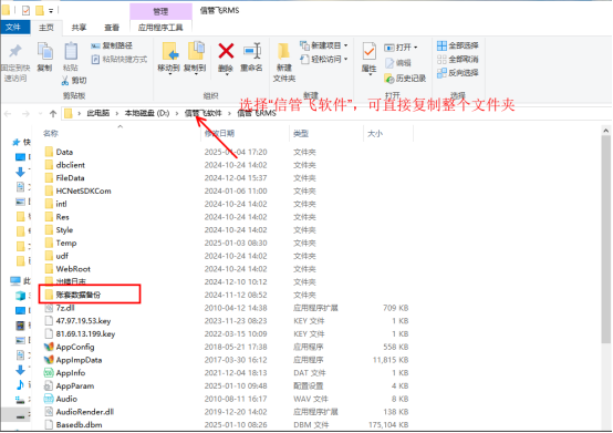 選擇桌面圖標,點擊鼠標右鍵選擇“打開文本位置”,可打開文件保存位置,選擇“信管飛軟件”文件夾,復(fù)制整個文件夾到新電腦上,如果文件過大,可把“賬套備份文件”中的之前日期數(shù)據(jù)刪除。如下圖所示:
