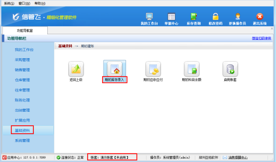期初數(shù)據(jù)的所謂期初是指計劃使用軟件日期(即賬套啟用日期)前的業(yè)務(wù)數(shù)據(jù),在正式使用軟件之前,可以先錄入好期初數(shù)據(jù),期初數(shù)據(jù)包括期初商品庫存、期初應(yīng)收應(yīng)付款、期初科目余額等。本篇文章我們以“信管飛RMS軟件”為例來介紹一下如何錄入期初商品庫存?