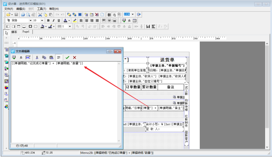 出庫單打印模板上顯示訂單累計數(shù)量,在開單界面打印下選擇“打印格式設計”,進入打印格式設計界面,點擊設計格式,進入模板設計器界面添加累計數(shù)量,調(diào)用數(shù)據(jù)項:[[單據(jù)明細."已完成訂單量"] + [單據(jù)明細."數(shù)量"]],如下圖所示: