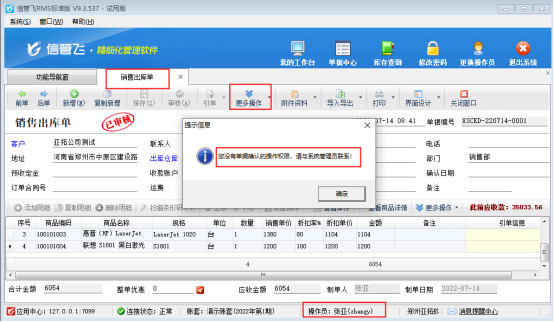 信管飛RMS軟件最新版支持在原有審核單據(jù)基礎(chǔ)上添加單據(jù)確認(rèn)功能,單據(jù)確認(rèn)后無法再修改,已審核未確認(rèn)可以繼續(xù)反審修改單據(jù),未避免確認(rèn)功能操作員誤操作,軟件支持設(shè)置操作員的單據(jù)確認(rèn)權(quán)限,本文以“信管飛RMS軟件”為例進(jìn)行示范。 演示視頻觀看鏈接:信管飛RMS軟件如何控制操作員的單據(jù)確認(rèn)權(quán)限演示視頻&nbs