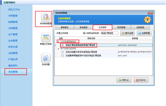 演示視頻觀看鏈接:如何設置商品擴展信息復制到單據擴展信息演示視頻 信管飛RMS軟件、信管飛倉庫管理軟件、信管飛送貨單軟件都支持設置商品的擴展信息提取到單據的擴展信息,啟用此參數后,在開單據時系統會自動調取商品信息中擴展信息的數據,省去了每次開單錄入單據擴展信息的時間,提高了開單效率。下面我們以信管飛R