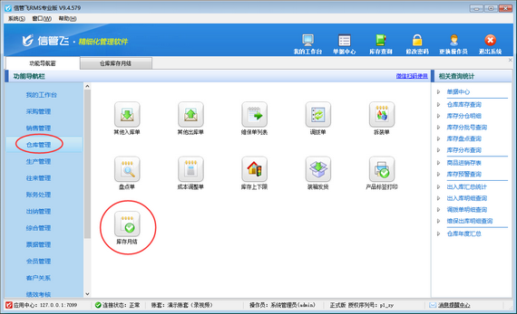 演示視頻觀看鏈接:信管飛RMS如何設置操作員不可使用庫存月結功能演示視頻 信管飛RMS、信管飛倉庫管理軟件最新版增加庫存月結功能,可按月或跨月進行庫存結存,月結后該賬期內的業務單據將不允許再修改! 另外,軟件支持操作員賬號及權限管理功能,支持設置多個操作員賬號可登錄軟件,為了避免操作員誤操
