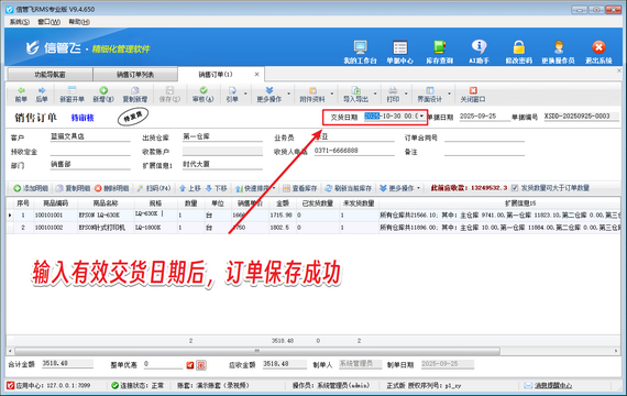 在訂單驅動的商業競爭中,交貨日期的準確性已成為企業信譽與運營效率的“生命線”。然而,傳統管理軟件中,訂單交貨日期常因人為疏漏或流程缺陷留空,導致生產計劃混亂、客戶信任流失、庫存失衡等連鎖問題。 信管飛軟件針對這一痛點,推出“訂單保存時交貨日期不能為空”功能,通過系統級強制校驗與智能聯動,將交貨日期從“可選字段”升級為“必填項